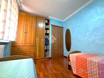 Dal soggiorno si accede al disimpegno che conduce alla zona notte composta da ampia camera da letto, due comode camerette e bagno finestato completo di box doccia.