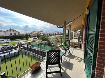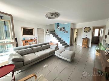 In frazione Malanghero, nella zona residenziale di via Santa Lucia, villa a schiera situata in complesso residenziale del 2010 in paramano esterno.