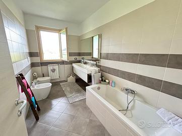 Al piano primo, disimpegno che divide gli ambienti, due camere matrimoniali, di cui una con terrazzo, e una camera singola utilizzata attualmente come cabina armadio, il bagno, anch'esso finestrato, con vasca.
