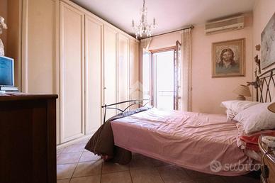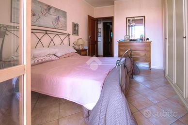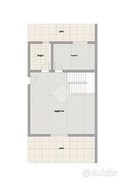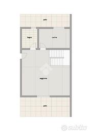 Internamente la casa si sviluppa su tre livelli, collegati tra di loro da una scala. Il piano terra è dedicato interamente alla zona giorno, composta da un ampio salone, cucinotto separato e bagno finestrato con box doccia. Al primo piano, la zona notte è divisa in camera matrimoniale, camera media, cabina armadio, bagno finestrato con vasca e due balconi a disposizione di ogni camera.