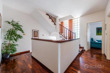 PIANO TERRA: ingresso indipendente, soggiorno, cucina, bagno, camera matrimoniale, cortile privato recintato di circa 100 mq ed autorimessa; PRIMO PIANO: tre camere da letto (due matrimoniali ed una doppia), due bagni, ripostiglio e due terrazze; PIANO INTERRATO: ampia zona cantina adibita a confortevole tavernetta con camino; SOTTOTETTO: area abitabile di circa 90 mq con affaccio su terrazza panoramica di 30 mq.