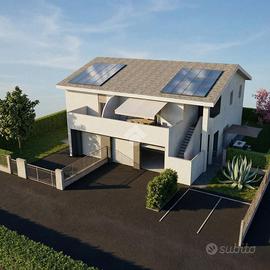 Garage di 23 mq con accesso diretto all'abitazione. Riscaldamento a pavimento con pompa di calore, cappotto termico e serramenti in PVC a basso coefficiente termico per elevato risparmio energetico.
