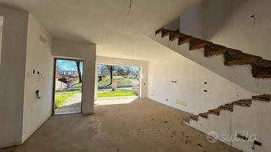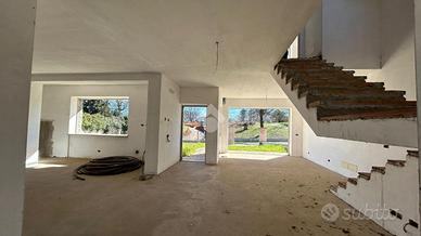 Supino, situata in un grazioso complesso di villette, proponiamo in vendita bellissima villa a schiera ANGOLARE da rifinire, costruita con cura dei dettagli, come per il vialetto da cui si accede all'abitazione, pavimentato con materiali di altissima qualità, garantendo non solo resistenza nel tempo ma anche un aspetto estetico raffinato e durevole. La soluzione si sviluppa su due livelli ed è così composta: un accogliente salone con angolo cottura dotato di ampia finestra con affaccio sul meraviglioso giardino che conferisce comfort e luminosità alla zona giorno, la quale dispone anche un comodo bagno di servizio finestrato. Di seguito troviamo la scala a vista personalizzabile a proprio piacimento, che ci conduce alla zona notte composta da tre camere da letto con balcone e un'altra stanza da poter utilizzare come sala relax, svago o come studio. Predisposizione per riscaldamento a pavimento. L'immobile è inoltre dotato di uno spazio adibito a legnaia e di una graziosa mansarda. Nella parte retrostante è presente un portico e un confertevole spazio per rillassarsi e godere dell'esterno senza rinunciare a riservatezza e privacy. Questa soluzione, situata in un contesto tranquillo ma vicina a tutti i principali servizi, è il luogo ideale per realizzare la tua visione di casa.