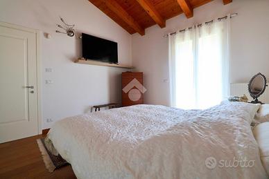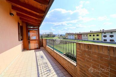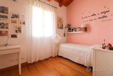 Tecnocasa la più grande rete di intermediazione in Europa con oltre 3000 punti vendita in Italia e oltre 4200 nel mondo vi propone: A Togliano di Torreano, in posizione tranquilla e riservata a soli 5 minuti da Cividale del Friuli, proponiamo in vendita una curata villetta accostata sul lato ovest, edificata nel 2008: la soluzione ideale per chi è alla ricerca di una casa accogliente, funzionale e pronta da vivere. L'abitazione si distingue per l'ottima esposizione su tre lati (nord, sud ed est), che garantisce ambienti sempre luminosi e ben arieggiati. Ad accogliere l'ingresso troviamo un ampio portico di circa 40 mq, che conduce al piano terra, dove si sviluppa una zona giorno spaziosa e ben organizzata: il soggiorno, confortevole e luminoso, si affianca alla cucina abitabile con accesso diretto al giardino, creando una piacevole continuità tra interno ed esterno. Completa il piano un bagno finestrato con doccia. Salendo la scala interna in legno si accede alla zona notte, caratterizzata da travi a vista che rendono l'ambiente caldo e accogliente. Qui si trovano tre camere da letto: due matrimoniali e una singola. Una delle camere matrimoniali dispone di uscita su una terrazza abitabile di circa 15 mq, esposta a sud. Il piano è servito da un bagno finestrato con vasca. Il piano interrato, di circa 70 mq, rappresenta un importante valore aggiunto: ospita una cantina, uno studio e un ampio bagno/lavanderia, offrendo spazi versatili e facilmente adattabili alle diverse esigenze. All'esterno, il giardino di circa 160 mq circonda la casa su tre lati, garantendo privacy e uno spazio verde ben sfruttabile. Completano la proprietà due posti auto coperti (circa 30 mq complessivi) e due posti auto scoperti (circa 40 mq complessivi). Le finiture sono di ottimo livello: il parquet di pregio, presente sia nella zona giorno sia nella zona notte, dona continuità ed eleganza agli ambienti, mentre la cura dei dettagli riflette una costruzione attenta e di qualità. Una solu