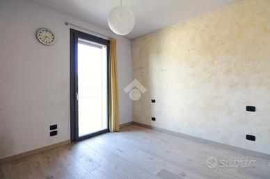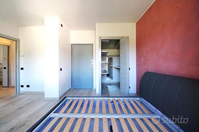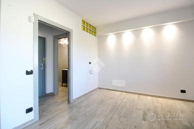 Dal terrazzo si accede alla luminosa zona living open space, dove cucina e soggiorno si fondono in un ambiente moderno, accogliente e funzionale. Sullo stesso livello è presente un comodo bagno di servizio.