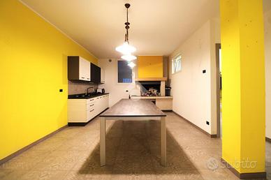 Al piano inferiore, direttamente collegato all'abitazione, troviamo un ampio garage e una straordinaria taverna con cucina e caminetto, un ambiente caldo e conviviale ideale pe