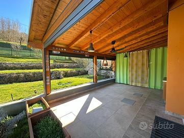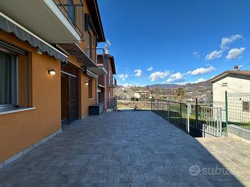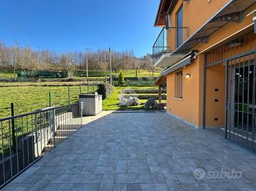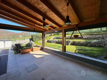 L'ingresso, completamente indipendente, accompagna a uno splendido terrazzo abitabile che si integra armoniosamente con il giardino privato, uno spazio ideale per vivere momenti di relax all'aperto godendo di una suggestiva vista panoramica. Il giardino è dotato di impianto di irrigazione sia manuale che automatico, pensato per garantire praticità e cura costante del verde.