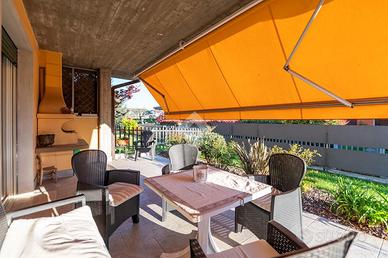 Villafranca di Verona - in ricercata zona residenziale, posizionata in via a fondo chiuso servita da ampi spazi verdi pur rimanendo comoda al centro, proponiamo in vendita elegante villa a schiera angolare con giardino privato di 225,00 mq. La soluzione è composta da ingresso indipendente tramite il giardino privato che ci accompagna all' interno dell'abitazione dove troviamo luminoso soggiorno di 28,08 mq con accesso al porticato coperto di 18,72 mq servito da camino, ideale per godersi piacevoli momenti all' esterno. Sempre al piano terra troviamo cucina abitabile di 13,68 mq, ampia zona antibagno e bagno finestrato a servizio della zona giorno. Al piano primo troviamo due camere da letto matrimoniali di 14,44 mq ciascuna, camera doppia di 12,00 mq e bagno finestrato. Tutti i locali godono di accesso sui balconi posti sul fronte e sul retro dell'abitazione. Scendendo al piano interrato infine troviamo ampia taverna di 26,20 mq dotata di camino, cantina e bagno/ lavanderia. A completamento della soluzione garage di 25,00 mq con basculante elettrica. Soluzione interessante viste le ampie metrature, la posizione e le recenti migliorie apportate all' immobile come la facciata, la caldaia, l'impianto di condizionamento, gli infissi, le zanzariere, i radiatori e la pavimentazione.