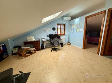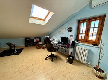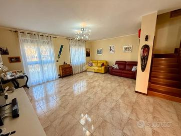 Nel cuore della tranquilla e ben collegata zona residenziale di Tetti Rosa, all'interno di un villaggio chiuso con accesso riservato ai soli residenti e caratterizzato da spese condominiali contenute, si trova questa splendida villa indipendente su tre lati, circondata da giardino privato, terrazzo e orto. La casa accoglie con ambienti ampi e luminosi, pensati per la vita quotidiana di una famiglia che desidera spazio e comfort. Al piano terra il salone, arioso e conviviale, dialoga con la cucina in maniera molto funzionale; completa il livello un primo servizio ristrutturato nel 2016. Salendo al piano superiore si sviluppa la zona notte, composta da tre camere da letto generose e due bagni entrambi finestrati e dotati di doccia: uno rifatto nel 2023 con moderna doccia walk-in, l'altro nel 2016. Una distribuzione ideale per famiglie numerose o per chi desidera ambienti ben organizzati e indipendenti. La mansarda, suddivisa in due stanze oltre al servizio, rappresenta uno spazio prezioso e versatile: perfetta come studio, area relax, zona hobby o camere aggiuntive. Il piano seminterrato sorprende per ampiezza e funzionalità: qui troviamo una taverna con camino, ideale per feste e momenti conviviali, un ampio box auto triplo, cantina, centrale termica e lavanderia. Non mancano ripostigli strategici e persino una pratica area ecologica ricavata nell'intercapedine con accesso diretto dalla rampa. Negli ultimi anni la proprietà è stata oggetto di importanti migliorie che ne aumentano comfort ed efficienza: nel 2023 sono stati installati un impianto fotovoltaico da 4,5 kW con accumulo da 8 kW, una nuova caldaia ibrida Daikin con pompa di calore e addolcitore, climatizzatori su tutti i livelli fuori terra e nuovi serramenti in legno con vetrocamera di ultima generazione. Nello stesso anno sono stati rifatti marciapiedi e terrazzo, mentre la pavimentazione dell'interrato è stata rinnovata nel 2016. Il riscaldamento è autonomo e frazionato per piano, permettendo una gest