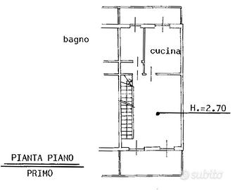 Piano primo: ampio e luminoso soggiorno, cucina abitabile e bagno