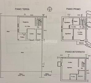 PIANO PRIMO: disimpegno con balcone, tre spaziose camere da letto, ripostiglio e bagno;