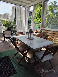 Cucina abitabile che si affaccia nel grande portico del giardino.