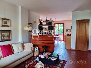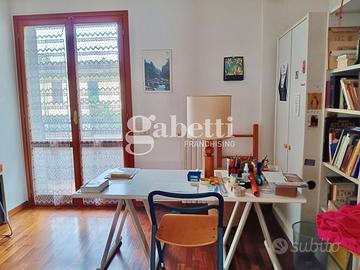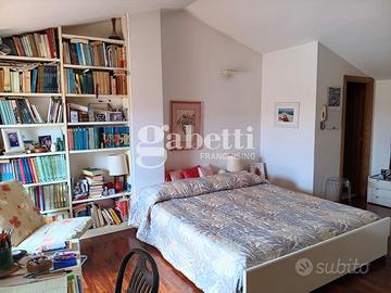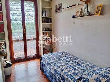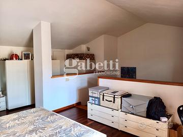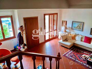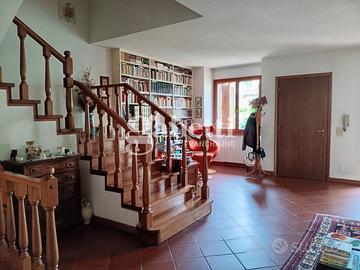 L'immobile con accesso dal resede esclusivo, al piano terra risulta composto da una grande zona soggiorno, cucina, sala pranzo con accesso diretto ad una prima terrazza tergale e un piccolo bagno di servizio. Al primo piano, tramite una scala in legno, troviamo due camere matrimoniali, una cameretta/studio e due bagni completi di cui uno finestrato oltre due terrazze su entrambe le facciate. Infine troviamo un grande vano mansarda utilizzato come camera padronale corredato di una bella terrazza a tasca e altri ambienti di servizio. Completa la proprietà al piano seminterrato un grande vano uso taverna, una lavanderia, un ripostiglio sottoscala e un comodo garage.