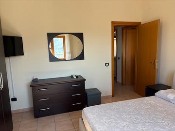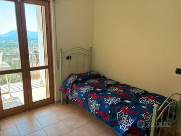 Nella parte alta del paese e più precisamente presso il complesso residenziale denominato " Villaggio degli Dei", proponiamo la vendita di una graziosa villetta a schiera su 2 livelli con spazio esterno, composta da: piano terra con ingresso e salone, cucina abitabile con accesso sul terrazzo attraverso una porta finestra, ripostiglio e bagno. Tramite il vano scala si accede alla zona notte al piano superiore, composta da tre camere ed un secondo bagno. La proprietà è dotata di giardino, aria condizionata e viene venduta parzialmente arredata.