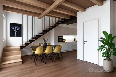 Composta da ingresso, grande soggiorno, disimpegno, ripostiglio, due bagni, tre camere da letto, guardaroba e disimpegno/lavanderia.