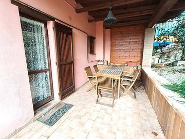 Piano Terra (Zona Giorno): L'ingresso si apre su un ampio e luminoso soggiorno con camino, perfetto per i momenti di relax, cucina separata. Completano il piano un funzionale disimpegno e un bagno di servizio. Il vero valore aggiunto è il doppio portico, che permette di godere dello spazio esterno su entrambi i lati della casa, ideale per pranzi all'aperto.