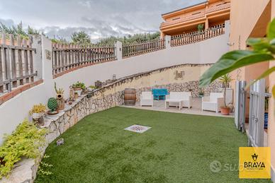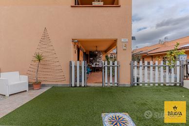 L'ingresso principale si apre su un ampio patio di circa 30 mq, perfetto per accogliere gli ospiti o godere di momenti di relax all'aria aperta. Varcando la soglia, si viene accolti da un luminoso salone doppio, elegante e spazioso, ideale come cuore pulsante della casa. Sullo stesso livello troviamo una comoda cameretta, un bagno moderno completo di doccia e un pratico ripostiglio. All'esterno, continua la vocazione della casa agli spazi aperti con un terrazzo esclusivo di circa 50 mq, perfetto per cene estive, feste in famiglia o semplicemente per chi ama avere un'area outdoor tutta da personalizzare.