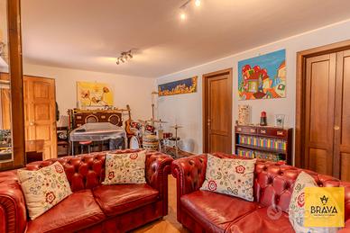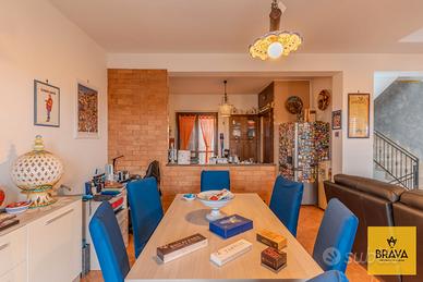 Una scala interna accompagna al primo piano, dove si sviluppa la zona giorno principale: una grande cucina che comunica in modo fluido con il soggiorno - un unico ambiente pari a due vani - dando vita a uno spazio conviviale e funzionale. Qui sono presenti un servizio e due sfoghi esterni, un balcone e un terrazzo di circa 20 mq, ideale per colazioni al sole o pause rigeneranti.