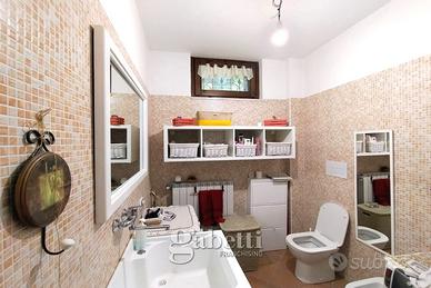 In zona Vazzieri proponiamo villa a schiera in ottime condizioni con comodo spazio esterno ad uso esclusivo. La soluzione è la centrale di un complesso di tre unità e gode di un doppio ingresso (carrabile e pedonale). Internamente l'immobile si sviluppa su quattro livelli così come segue: - al piano terra troviamo una comoda tavernetta composta da soggiorno con termocamino, cucina, bagno e ripostiglio; - al piano superiore troviamo la zona giorno con ampio salone servito da un giardino, cucina, balcone e bagno; - al primo piano troviamo la zona notte con una camera matrimoniale, due camerette, due balconi e un bagno; - all'ultimo piano troviamo infine una mansarda con tre camere e un bagno.