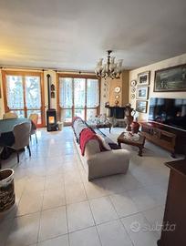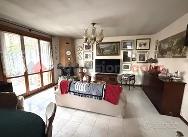 A POCHI PASSI DAL CENTRO PAESE, IN UNA TRANQUILLA VIA A FONDO CHIUSO, PROPONIAMO VILLA A SCHIERA DI TESTA, CIRCONDATA DAL GIARDINO PRIVATO SU TRE LATI E DOTATA DI BOX DOPPIO. L'ABITAZIONE SI SVILUPPA SU PIU' LIVELLI: AL PIANO RIALZATO TROVIAMO UN AMPIA ZONA GIORNO COMPOSTA DA CUCINA ABITABILE, LUMINOSO SOGGIORNO CON ZONA PRANZO E UN BAGNO DI SERVIZIO. DA QUI SI ACCEDE DIRETTAMENTE AL GIARDINO DISTRIBUITO SUI TRE LATI DELL'ABITAZIONE E FORNITO DA UN PORTICO IDEALE PER MOMENTI ALL'APERTO. SCENDENDO AL PIANO INTERRATO TROVANO UNA SPAZIOSA CANTINA, LA LAVANDERIA E L'AUTORIMESSA DOPPIA. AL PRIMO PIANO SI SVILUPPA LA ZONA NOTTE, COMPOSTA DA TRE CAMERE DA LETTO, UN SECONDO BAGNO E UN RIPOSTIGLIO. COMPLETA LA PROPRIETA' UN LOCALE SOTTOTETTO, BEN RIFINITO ACCESSIBILE INTERNAMENTE, CON UNA PICCOLA LAVANDERIA E CABINA ARMADIO. SOLUZIONE IDEALE PER CHI CERCA TRANQUILLITA' SPAZI GENEROSI E COMODITA' AI PRINCIPALI SERVIZI DEL PAESE. Questa descrizione è puramente indicativa e non costituisce elemento contrattuale.