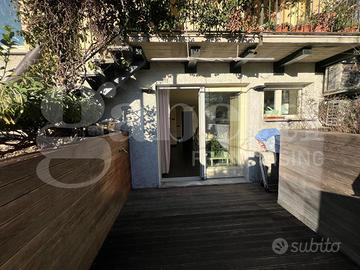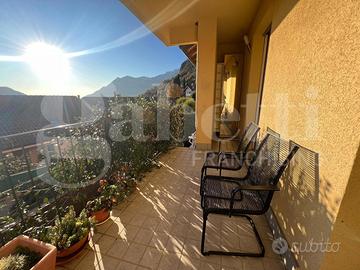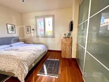 Piano mansarda con travi a vista in legno camera, bagno, locale guardaroba, terrazzo, vista lago