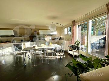 Rancio: Villa a schiera su 4 piani collegati da ascensore posizionata alla fine di una via tranquilla a fondo cieco, si accede dal vialetto dell'ingresso pedonale della casa ed adiacente l'accesso carraio per raggiungere il box doppio al piano terra. La villa è stata costruita nel 2006 ed è così composta