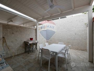 Dal cancelletto piano strada si accede ad una corte spaziosa per ospitare e godersi la brezza marina. Entrando al piano terra ci accoglie una grande zona giorno, bagno e cucina dalla quale si accede ad unampia corte interna con patio in legno, doccia e cucina esterna.