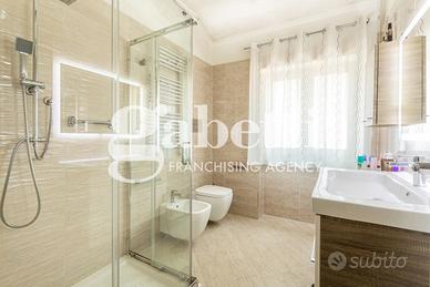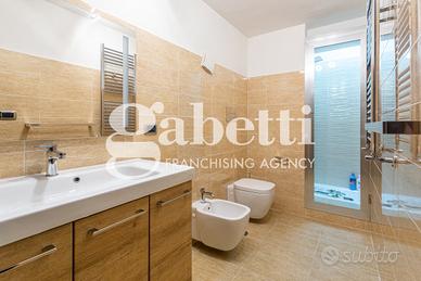 La zona notte, situata al primo piano, è composta da due camere da letto - una delle quali dotata di bagno privato - una cameretta, un secondo bagno e un comodo terrazzino a livello di circa 20 mq, perfetto per godersi la tranquillità del parco.