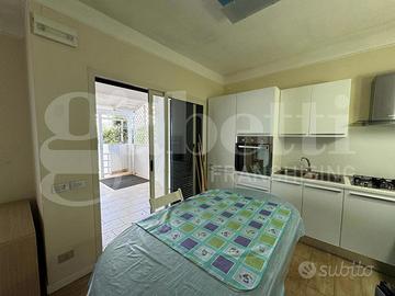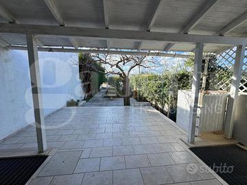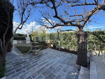 Ad impreziosire la dimora, Vi è un piacevole spazio esterno privato, parzialmente coperto e pavimentato, ideale per momenti di relax, perfetto per cene all'aperto con amici e familiari, godendo della piacevole brezza marina, oltre un giardino di 80 mq con un raffinato prato inglese e alberi da frutto.