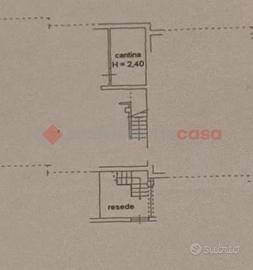 -Al piano rialzato sono presenti un soggiorno con camino, una cucina abitabile con accesso diretto al resede tergale di 24 mq e un bagno finestrato con box doccia.