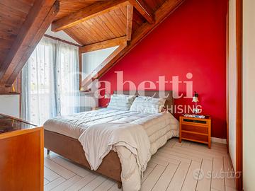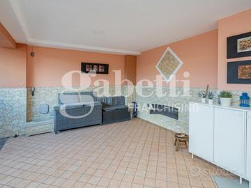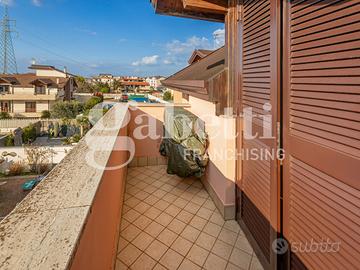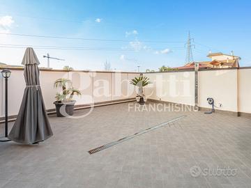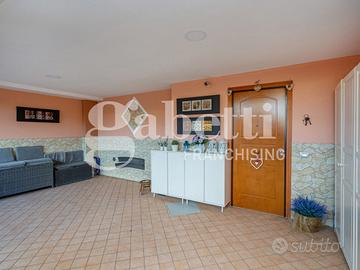Il terrazzo, perfetto per momenti di relax all'aria aperta, è un'ulteriore punto di forza della villa, ideale per organizzare cene estive o per godere della tranquillità del contesto circostante. L'altro terrazzo, coperto, gode di accesso carrabile comodo per parcheggiare un auto ed un eventuale scooter.