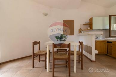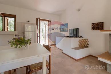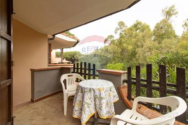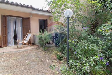 villetta a schiera, immersa nel verde della Pineta Is Arenas, nei pressi dell'Is Arenas Golf & Country Club.