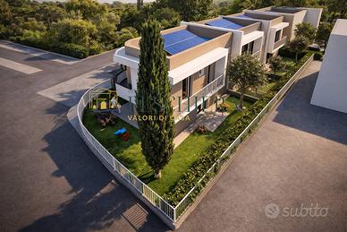 Rif: P 27.53 B Classe energetica: A4 A Peschiera del Garda, in una delle zone più suggestive e tranquille della città, nei pressi del laghetto del Frassino e a soli 800 metri dal vivace centro storico, proponiamo una nuova villa a centrale, disposta su due livelli, con autorimessa e posto auto di proprietà. Il progetto residenziale prevede la costruzione di tre eleganti ville indipendenti, edificate secondo i più elevati standard energetici e costruttivi, in classe A4. Ogni unità è pensata per offrire comfort, funzionalità e privacy, articolandosi su due livelli ben distribuiti. Al piano terra si accede tramite un ingresso indipendente che conduce al giardino privato fronte-retro di 106 mq, perfetto per momenti di relax allaperto. Linterno accoglie un ampio e luminoso soggiorno con angolo cottura, con accesso diretto al giardino e al porticato tramite porta finestra, oltre a un bagno di servizio che completa la zona giorno. Il piano superiore ospita la zona notte, composta da tre camere da letto di cui la matrimoniale con bagno privato un disimpegno funzionale, un comodo ripostiglio, un secondo bagno e balconi che offrono scorci panoramici e spazi aggiuntivi da vivere. La proprietà include un garage singolo al piano terra e un posto auto esterno, garantendo praticità e sicurezza. Le dotazioni impiantistiche sono allavanguardia: ogni abitazione è dotata di impianto fotovoltaico da almeno 3 kW, riscaldamento a pavimento alimentato da pompa di calore autonoma, e predisposizione per impianto di climatizzazione indipendente. La sicurezza e lefficienza energetica sono ulteriormente garantite da porta dingresso blindata e serramenti in PVC con apertura vasistas, completi di zanzariere e tapparelle in alluminio motorizzate. Questa villa rappresenta la soluzione ideale per chi desidera una residenza moderna, immersa nel verde ma comoda ai servizi, con ambienti progettati per il benessere quotidiano e una qualità costruttiva orientata al...