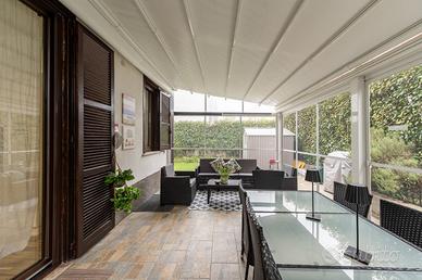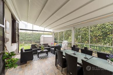 Villa di testa con giardino, immersa nel verde e pronta da abitare Ci sono case che si lasciano raccontare facilmente. E poi ci sono quelle che, per essere comprese davvero, vanno vissute. Questa villa di testa, libera su tre lati e immersa nel verde, è una di quelle abitazioni in cui si percepisce subito la cura, l'attenzione ai dettagli e la qualità delle scelte fatte nel tempo. Una casa ristrutturata con criterio, senza spese condominiali e con soluzioni pensate per ottimizzare i consumi energetici e il comfort quotidiano. Inserita in un contesto residenziale tranquillo e ordinato, la proprietà si sviluppa su più livelli armoniosamente distribuiti, offrendo spazi funzionali e ben proporzionati, pronti da vivere senza alcun intervento da affrontare. Al piano terra, l'ingresso accompagna in una zona giorno luminosa e accogliente, dove il soggiorno dialoga con una cucina abitabile ampia e conviviale, separata ma perfettamente integrata nella vita della casa. Da qui lo sguardo si apre verso il giardino privato di 170 mq, riservato e appartato, arricchito da una veranda bioclimatica elegantemente allestita, uno spazio prezioso da vivere tutto l'anno, in continuità con l'esterno. Sempre al piano troviamo un disimpegno con armadiature su misura laccate, un vano lavanderia finestrato e un bagno finestrato con doccia, tutti ambienti studiati per rendere la casa pratica e ordinata. I pavimenti in gres porcellanato effetto parquet conferiscono calore e coerenza agli spazi. Al piano primo si sviluppa la zona notte, rifinita in "vero" parquet, con ambienti pensati per garantire privacy e comfort. La camera matrimoniale dispone di una sala da bagno con accesso diretto, moderna, attuale e curata in ogni dettaglio. Il piano sottotetto, che copre l'intera superficie, rappresenta uno spazio estremamente versatile ideale per i ragazzi, per chi lavora da casa, o per chi desidera un'area dedicata a hobby, studio e palestra. La villa si presenta in condizioni impecc
