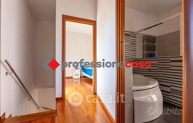 Salendo al primo piano, scoprirai due spaziose camere da letto matrimoniali, di cui una dotata di cabina armadio, perfetta per organizzare al meglio il tuo spazio. Un bagno finestrato con vasca e un terrazzo completano questa zona notte, offrendo un rifugio tranquillo e luminoso. La casa è termo autonoma, garantendo comfort tutto l'anno grazie al riscaldamento a pompa di calore alimentato a gas naturale.