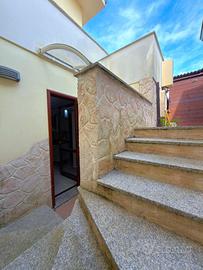 Nel suggestivo contesto di via Monte Furru (Sassari 2), in Strada Vicinale Baddimannedda, proponiamo in vendita una splendida villa a schiera di 135mq, ideale per chi desidera vivere in un ambiente riservato, curato e a contatto con la natura. L'ingresso alla proprietà avviene tramite un cancello comune che conduce, attraverso un piacevole vialetto, alle singole unità, ognuna dotata della propria indipendenza. Ad accoglierci all'esterno troviamo un primo cortile privato, curato, accogliente e arricchito da piacevoli spazi verdi, perfetto per momenti di relax all'aria aperta. Da qui si accede all'abitazione direttamente nell'ampio soggiorno, luminoso e ben distribuito, collegato armoniosamente alla cucina abitabile tramite un'elegante porta ad arco. La cucina, funzionale e ben organizzata, è dotata di una comoda penisola, ideale per la convivialità quotidiana. Accanto alla cucina è presente un primo bagno finestrato con doccia multifunzione. Sempre dalla cucina si accede a una seconda area esterna: un cortile molto spazioso e versatile, impreziosito da gazebo in legno, zona barbecue e casetta attrezzi, perfetto per cene estive e momenti in compagnia. La zona notte si sviluppa su più livelli, garantendo privacy e comfort: al piano primo troviamo due camere da letto, entrambe con accesso al proprio terrazzo privato, e un secondo bagno finestrato con box doccia. Al secondo piano si sviluppa la seconda zona notte, composta da una camera mansardata con balcone, un bagno finestrato con doccia e un caratteristico terrazzo a tasca. Completa la proprietà una dotazione impiantistica pensata per il massimo comfort: ogni piano è servito da pompe di calore, mentre al piano seminterrato è presente una stufa idro-pellet, ideale per garantire efficienza e calore durante i mesi invernali. La villa viene venduta completamente arredata, pronta per essere abitata sin da subito, rappresentando una soluzione ideale sia come prima casa che come investimento