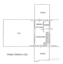 SOGGIORNO E CUCINA SEPARATI DA PORTA A VETRO, BAGNO, DA SCALA INTERNA SI ACCEDE DIRETTAMENTE ALLA LAVANDERIA COLLEGATA AD UN AMPIO GARAGE PER DUE AUTOMOBILI.