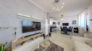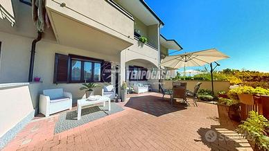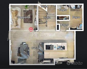 al piano terra: ingresso su soggiorno living, cucina abitabile e bagno di servizio, proseguendo al piano superiore troviamo 2 camere da letto, terrazzo, balcone e 2 bagnI.