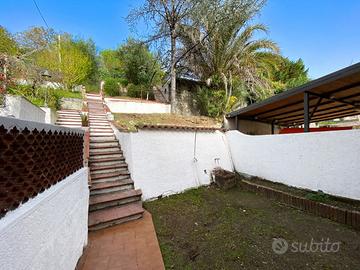 Il giardino di 135 mq. è parzialmente terrazzato, parte attrezzato a verde e parte pavimentata, ideale per predisposizione arredo da esterno, ed è arricchito da un vano deposito che offre spazio extra per riporre le attrezzature.