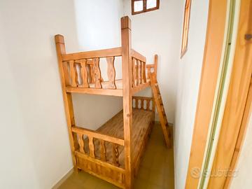 La villetta si sviluppa su due livelli, composta al piano terra da soggiorno con camino e angolo cottura. Una scala a chiocciola conduce al piano primo, composto da una camera da letto matrimoniale con accesso a un balcone che offre una vista sul giardino antistante, una cameretta con un piccolo finestrino, e un bagno.
