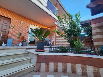 Attualmente è composta da: Salone doppio, cucina abitabile di 15 mq, bagno e terrazzo di 115 mq (al piano terra), 3 ampie camere, doppi servizi e 2 terrazzi semi vivibili (al I° piano), sala hobby di 40 mq con accesso indipendente, lavatoio, cantina e box auto di 18 mq (al piano S1), completa la proprietà una mansarda al piano II° adibita a studio o camera con lavatoio personale.