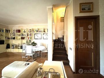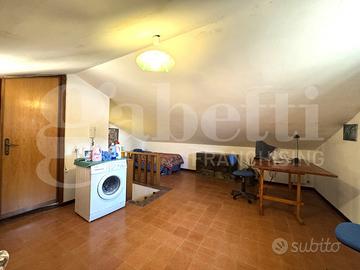 Il secondo piano è caratterizzato dalla presenza di una mansarda vivibile con bagno di servizio e un piccolo terrazzino. Inoltre la proprietà dispone di una comoda taverna con camino ideale come sala hobby, studio o zona relax da cui possiamo accedere sia dal garage sia attraverso una scala interna dal piano terra.