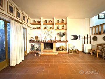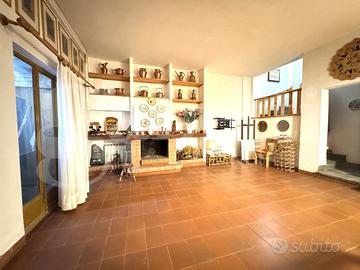 La villa si sviluppa su tre livelli: al piano rialzato troviamo un disimpegno all'ingresso, salone doppio luminoso e accogliente da cui si può accedere anche al giardino privato, cucina abitabile e bagno di servizio.