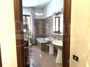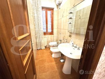 Al primo piano troviamo la zona notte con tre camere da letto spaziose di cui una adibita attualmente a stanza armadio, un bagno finestrato con vasca e due balconi.
