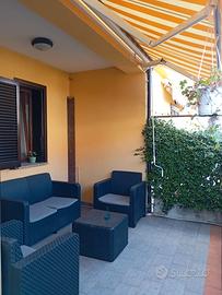 Villa a schiera di 65mq con posto auto di proprietà, composta da salone e cucina in unico ambiente luminoso...due camere da letto con affaccio sui terrazzo esterno ampio e soleggiato, doccia esterna, zona barbecue, l'immobile è costruzione 2011, ristrutturato nel 2022, è dotato di cappotto termico, caldaia mai usata con termosifoni, condizionatori con WIFI a pompa di calore in ogni stanza, napoletane con sabbiatura a fuoco, porta blindata, infissi doppia camera legno, tende da sole tempotest, fotovoltaico con accumulo e solare termico 200 LT doppio pennello, no condominio posto auto doppio. Distanza dal lungomare 500 mt. 7 a piedi. Ben servita con supermercati panificio e poste a pochi passi.