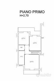 Primo piano con camera da letto matrimoniale con balcone, due camerette con balcone unico, comodo ripostiglio e bagno con doccia;