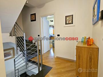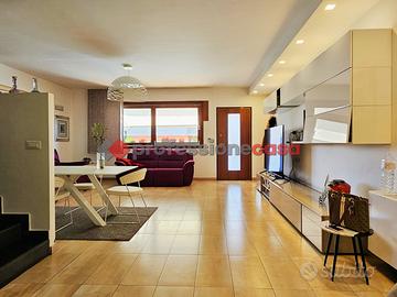 Professionecasa Paesi Etnei propone in vendita nella prestigiosa zona di Cerza a San Gregorio di Catania, nelle immediate vicinanze del Parco Adige, elegante villa a schiera in residence, costruzione 2010, che si sviluppa su quattro elevazioni. La villa si estende per una superficie di 235 mq interni, che sono così composti: al piano terra è presente un comodo garage di 17 mq ed un'ampia taverna con ripostiglio; al primo piano troviamo un luminoso salone open space, una cucina soggiorno ed un bagno; al piano superiore si trova la zona notte, che comprende una camera matrimoniale con bagno privato, un'ulteriore camera da letto, servizio e vano lavanderia; all'ultimo piano mansardato sono presenti due ampi vani. All'esterno, adiacente il garage, troviamo un terrazzino dov'è possibile parcheggiare un'altra auto, ed una scala esterna che ci conduce al terrazzo di 15 mq che porta all'ingresso dell'immobile. Dalla cucina-soggiorno è possibile accedere ad un balcone collegato ad un altro terrazzo privato di 25 mq. Al piano superiore le camere sono entrambe dotate di balcone. I piani della villa sono tutti collegati tramite un'elegante scala interna. L'immobile è inoltre dotato di pompe di calore caldo/freddo a parete, infissi in vetrocamera ed eleganti finiture quali i pavimenti in gres porcellanato e parquet. APE in fase di rilascio.