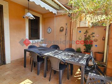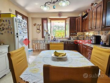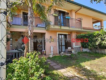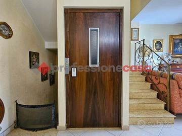 Professionecasa Paesi Etnei propone in vendita nei pressi del Viale Europa a San Gregorio di Catania, esattamente in Via Dante Alighieri, splendida villa accorpata, costruzione 2005, disposta su quattro livelli e dotata di garage di 25 mq ed un giardino privato. La proprietà si sviluppa per una superficie di 250 mq distribuiti in nove vani, ed è così composta: al piano cantinato è presente un salone doppio con camino, cucina abitabile e bagno; al piano terra troviamo un ulteriore soggiorno di due vani, cucina abitabile, bagno e lavanderia; il primo piano comprende due camere da letto, una camera matrimoniale con cabina armadio e bagno privato, e servizio; infine al piano mansardato sono presenti due camere e bagno. Lo spazio esterno comprende un giardino di 60 mq ed un terrazzo al piano terra, tre balconi al primo piano ed un terrazzino al piano mansardato. La villa dispone di impianto di videosorveglianza, antifurto, comodo ascensore, riscaldamento autonomo, climatizzatori e gruppo elettrogeno. Completa la vendita garage di 25 mq con accesso carrabile privato e due posti auto.