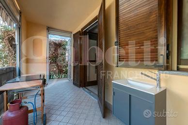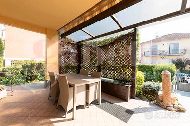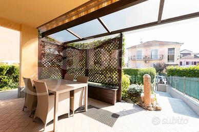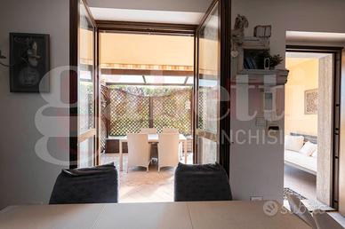 Dal giardino antistante ed attraverso il patio si accede all'abitazione così composta: