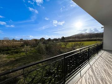 Il secondo appartamento, situato al primo piano, è caratterizzato da una cucina che si affaccia su un balcone panoramico, un luminoso soggiorno con accesso a un ampio terrazzo, questo spazio offre agli ospiti una vista e un'atmosfera confortevole e due camere da letto di cui una che affaccia sul terrazzo, il bagno completa questa zona abitativa.
